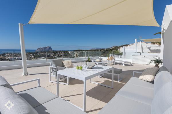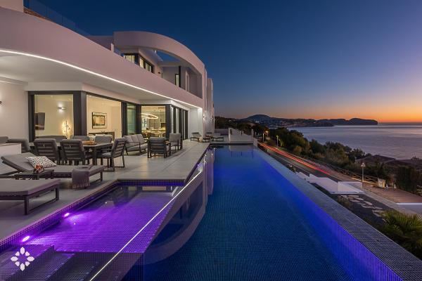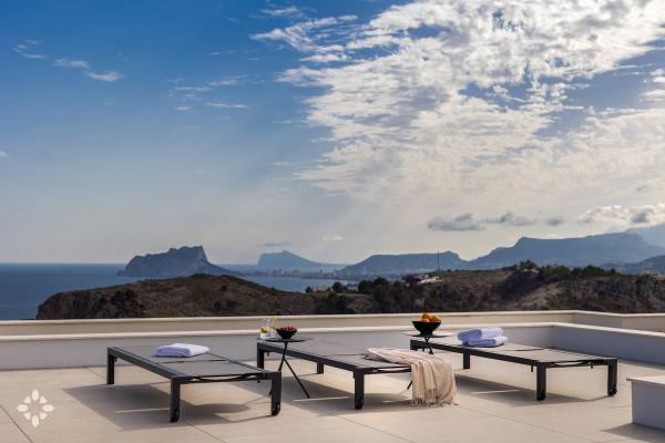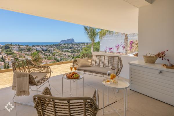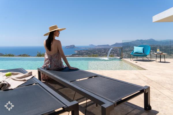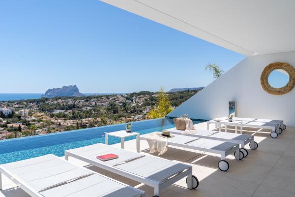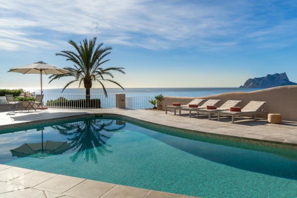 Let the Mediterranean be part of your getaway to the Costa Blanca with our houses for rent with sea views for holidays in Moraira, the coast of Benissa, Calpe or Altea. Enjoy the exclusive peace offered by a frontline villa with infinity views, or choose to stay in one of our villas in secret corners that enjoy views of the valley and the sea with the Peñón de Ifach as the protagonist.